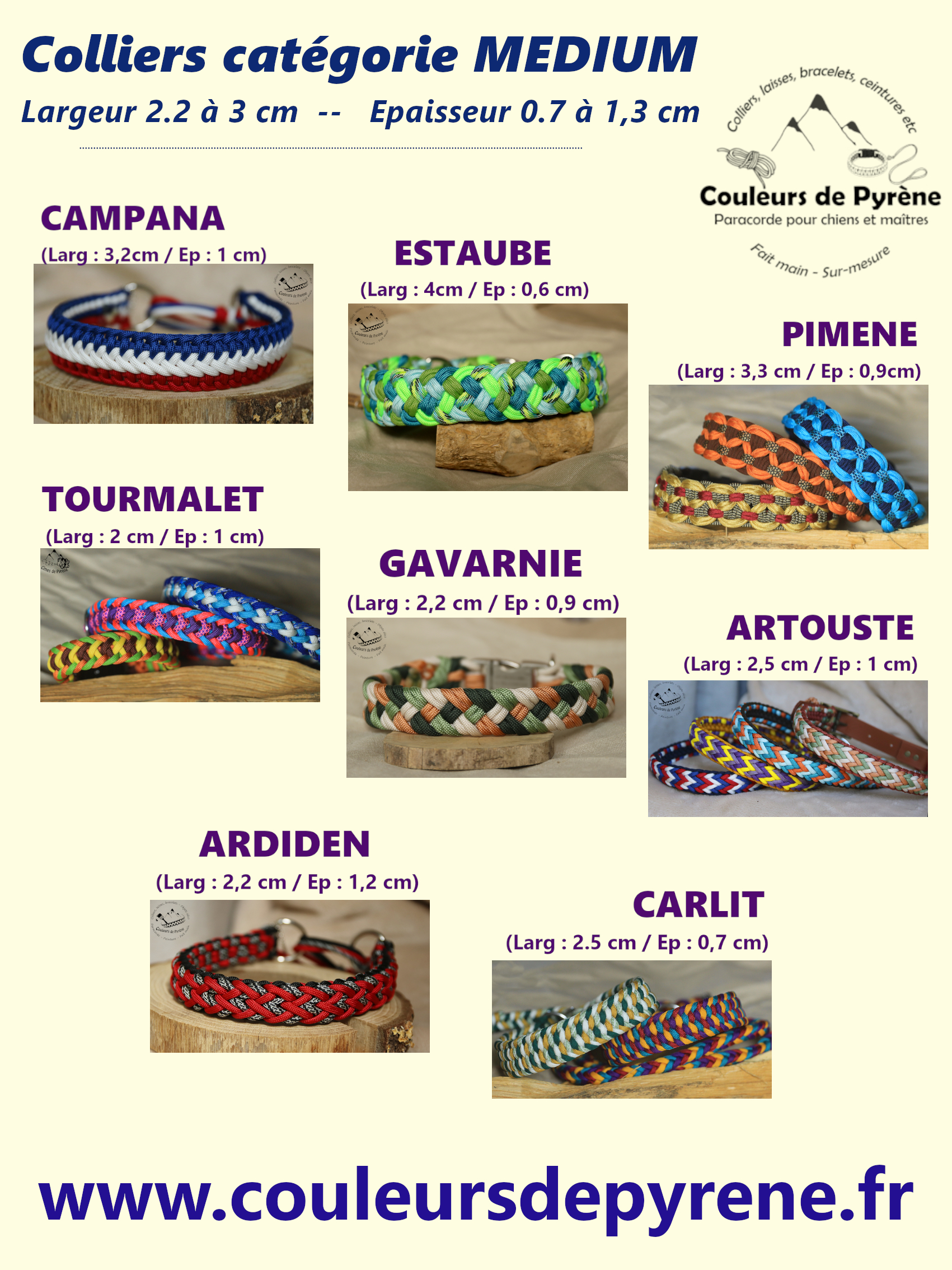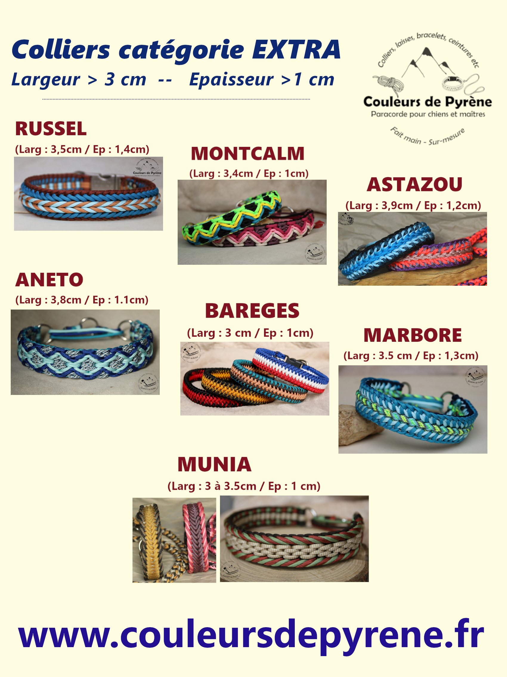 Les motifs de laisses Hautacam et Ossau (cf plus bas) peuvent aussi entrer dans cette catégorie, pour ceux qui veulent un collier rond.