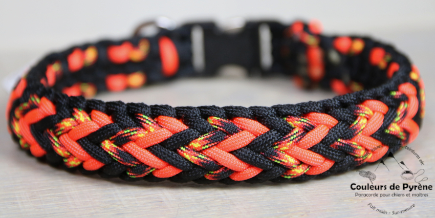 Collier en paracorde, motif ARTOUSTE (catégorie MEDIUM), couleur orange et noir.