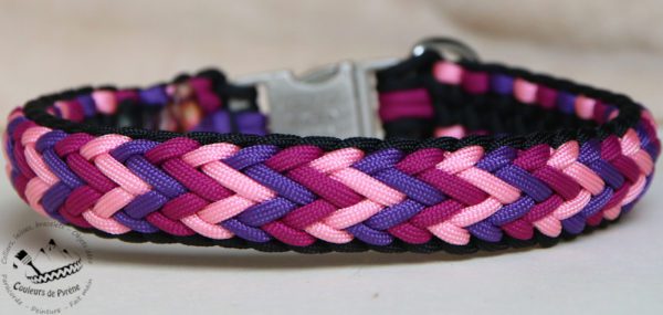 Collier en paracorde, motif ARTOUSTE (catégorie MEDIUM), couleur noir, rose et violet.