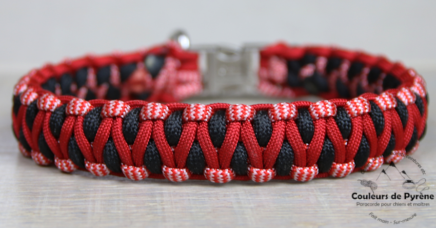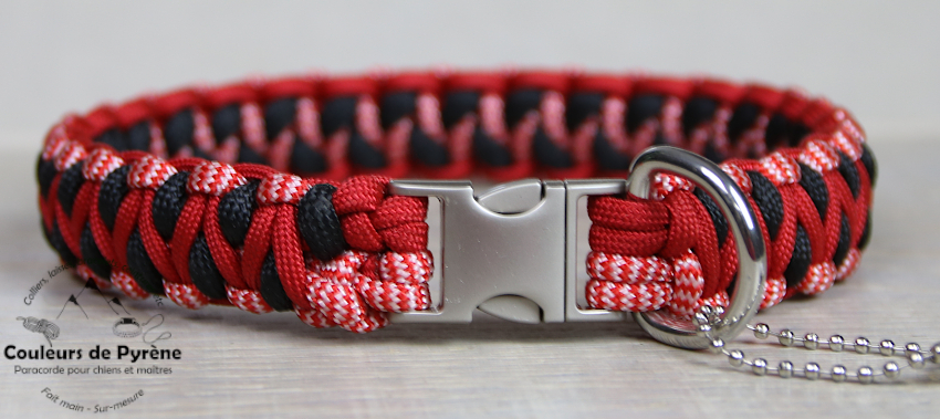 Collier en paracorde motif AUBISQUE rouge et noir.
