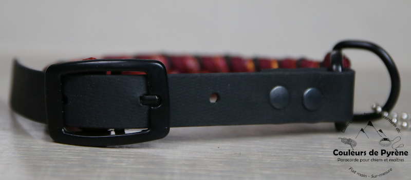 Collier en paracorde motif AZUN (MINI), couleur bordeaux, rouge pailletté, noir.