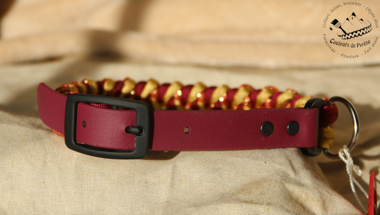 Collier en paracorde motif AZUN (MINI), couleur bordeaux, rouge pailletté, noir.
