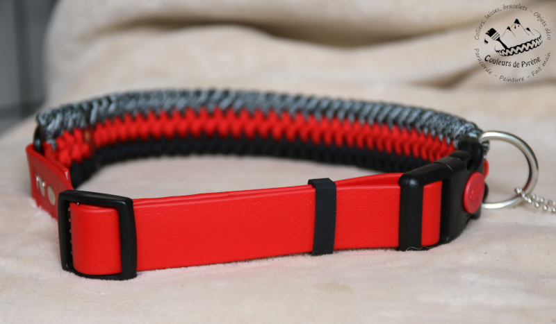 Fermeture boucle rapide avec sécurité + biothane® : voire photo 2 (voir explications). La biothane est une sangle enduite de PVC, étanche, imputrescible et ne demandant aucun entretien.