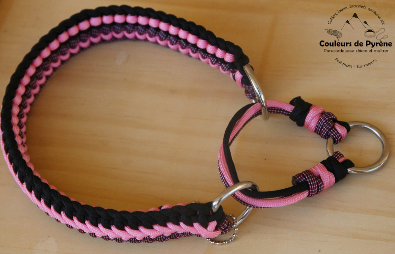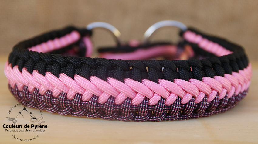 Collier en paracorde pour chien, catégorie MEDIUM, motif CAMPANA, couleurs rose et noir.