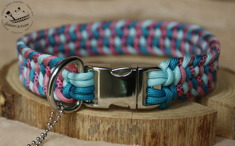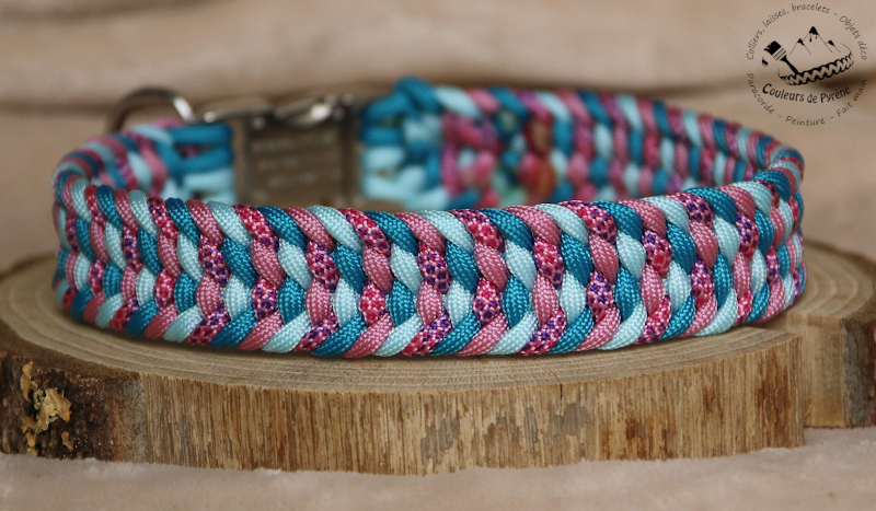 Collier en paracorde pour chien, motif CARLIT (MEDIUM), couleurs apstel rose et bleu.