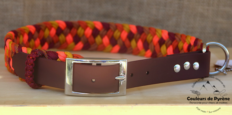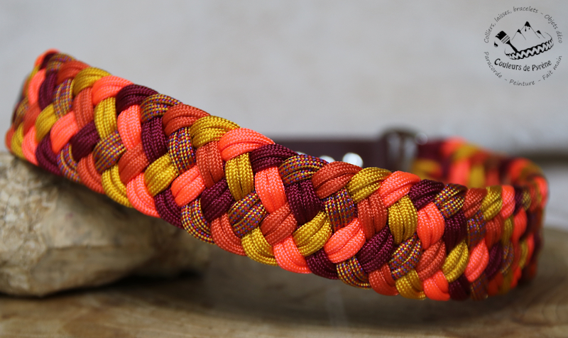 Collier en paracorde, motif ESTAUBE (MEDIUM), catégorie MEDIUM, coloris orange, bordeaux, jaune.