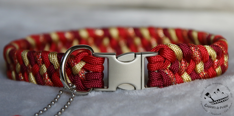 Collier en paracorde pour chien, catégorie MINI, motif GAVARNIE-Mini, couleurs rouge et or.