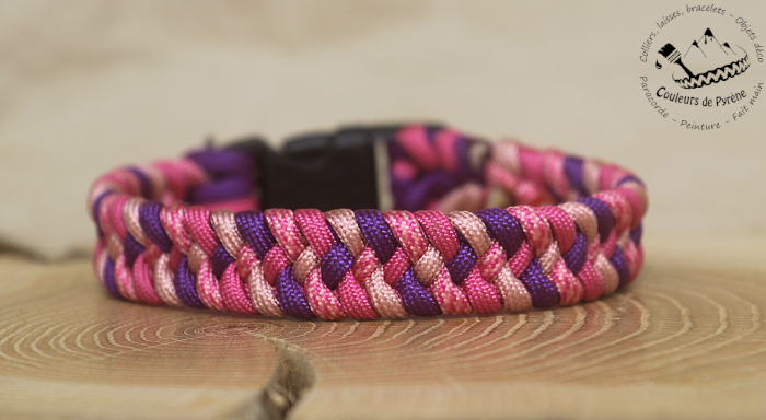 Collier en paracorde pour chien, catégorie MINI, motif GAVARNIE (version mini), rose et violet.
