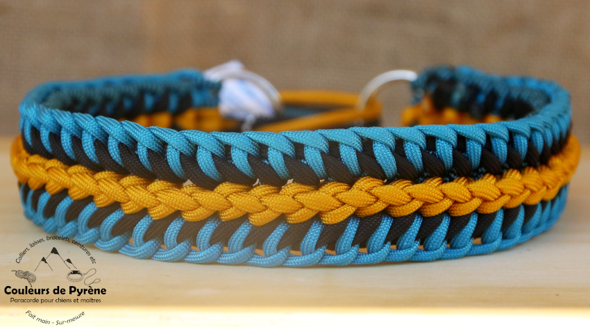 Collier en paracorde pour grand chien, motif MARBORE (catégorie EXTRA), couleurs turquoise, jaune et noir