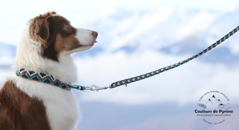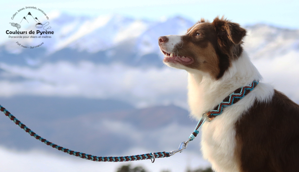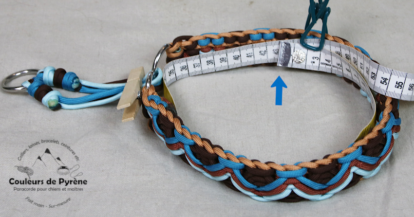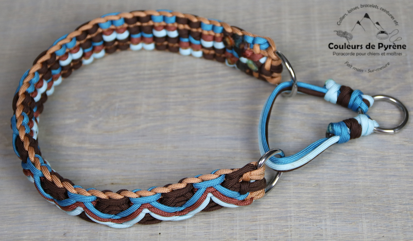 Collier en paracorde pour chien, catégorie EXTRA, motif MONTCALM marron et bleu.