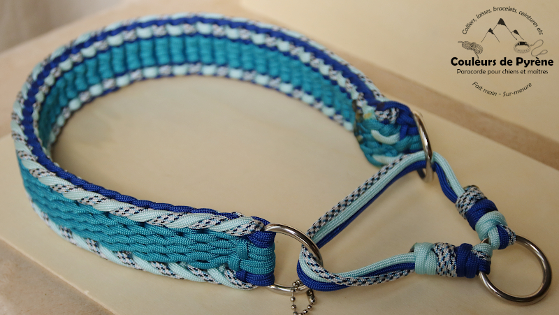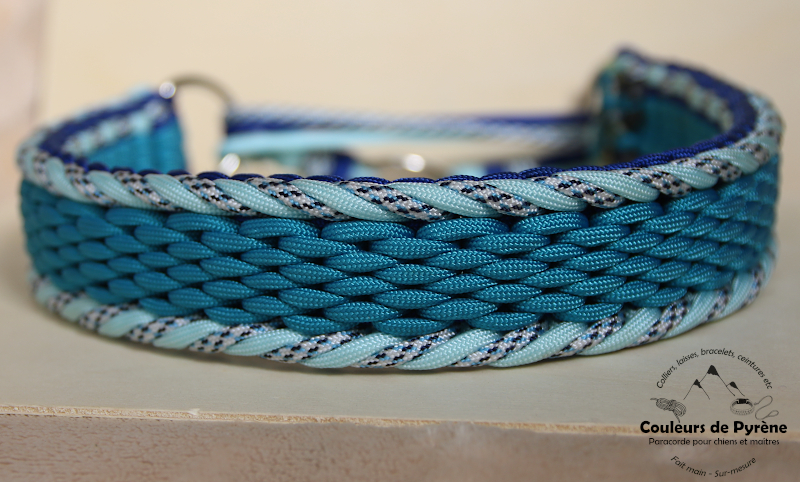 Collier en paracorde, fait main, pour chien, motif MUNIA version « Cascade » (catégorie EXTRA), couleurs bleu.