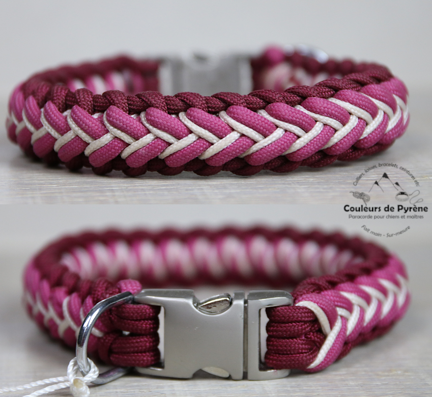 Collier en paracorde, motif ORHY (catégorie MINI), couleur bordeaux, fuschia et crème