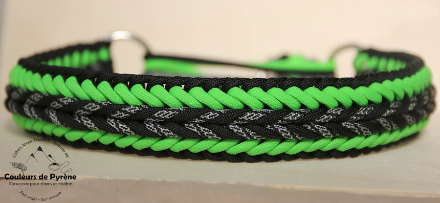 Collier motif RUSSEL (catégorie EXTRA), couleurs noir et vert fluo.
