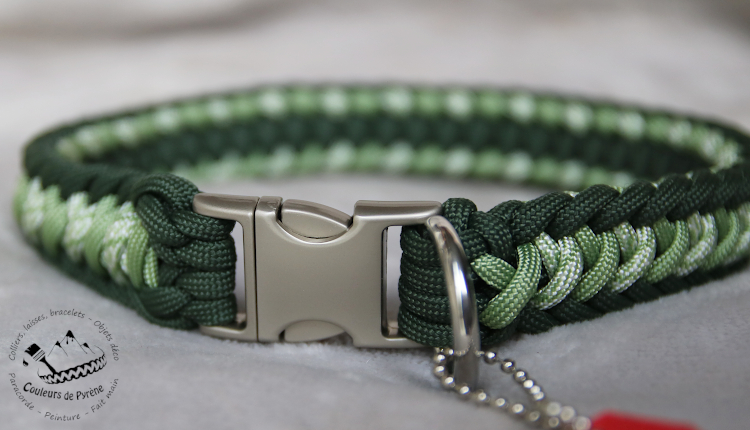 Collier en paracorde motif TOURMALET (MEDIUM), couleurs kaki et vert clair.