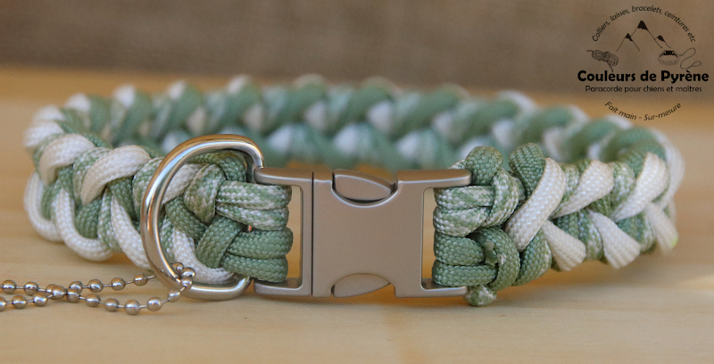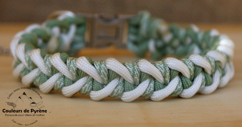 Collier en paracorde motif TROUMOUSE (MINI), vert amande et crème