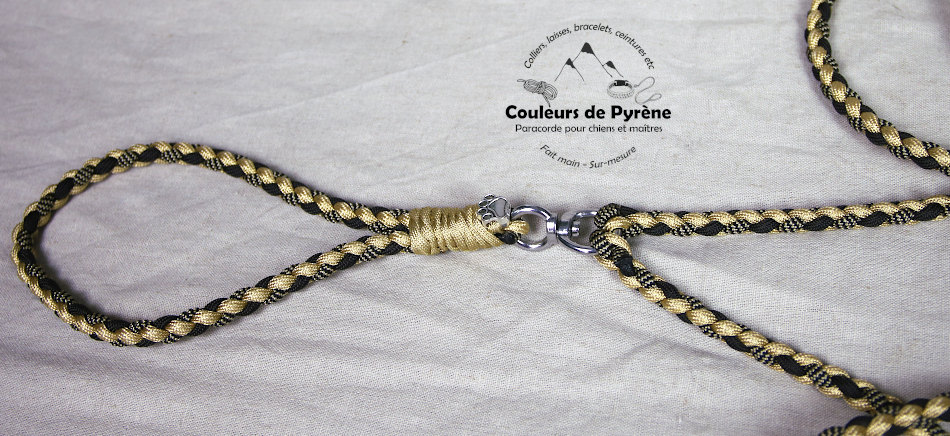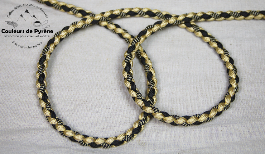 Double laisse en paracorde, motif MADAMETE (MINI), couleur noir et or.