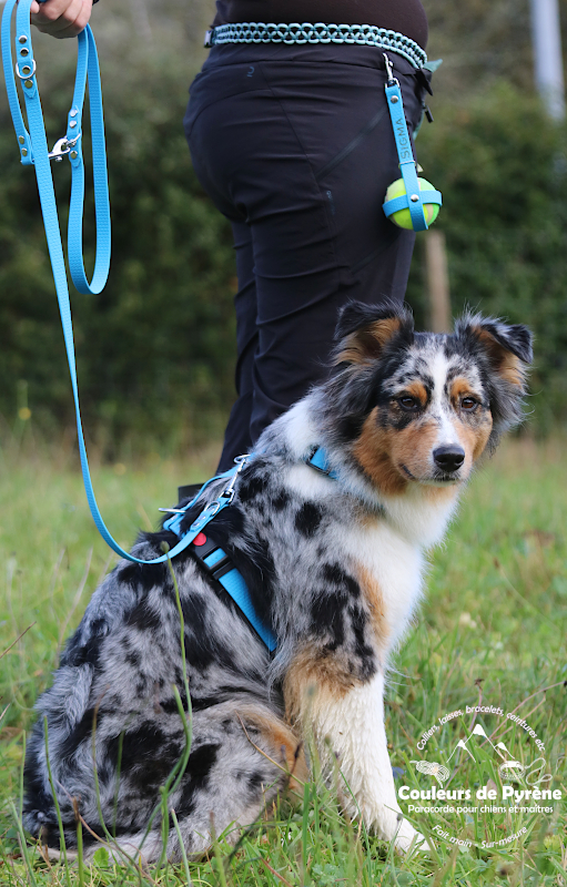 – soit par ajout d’une poignée de biothane d’une autre couleur sur la sangle dorsale (photos à venir)