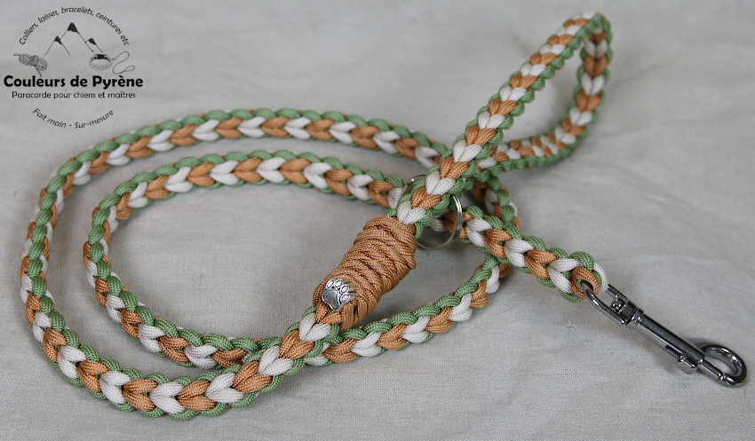 Laisse en paracorde, modèle ASPIN, couleurs pastel naturelle : crème, vert amande, cuivré.